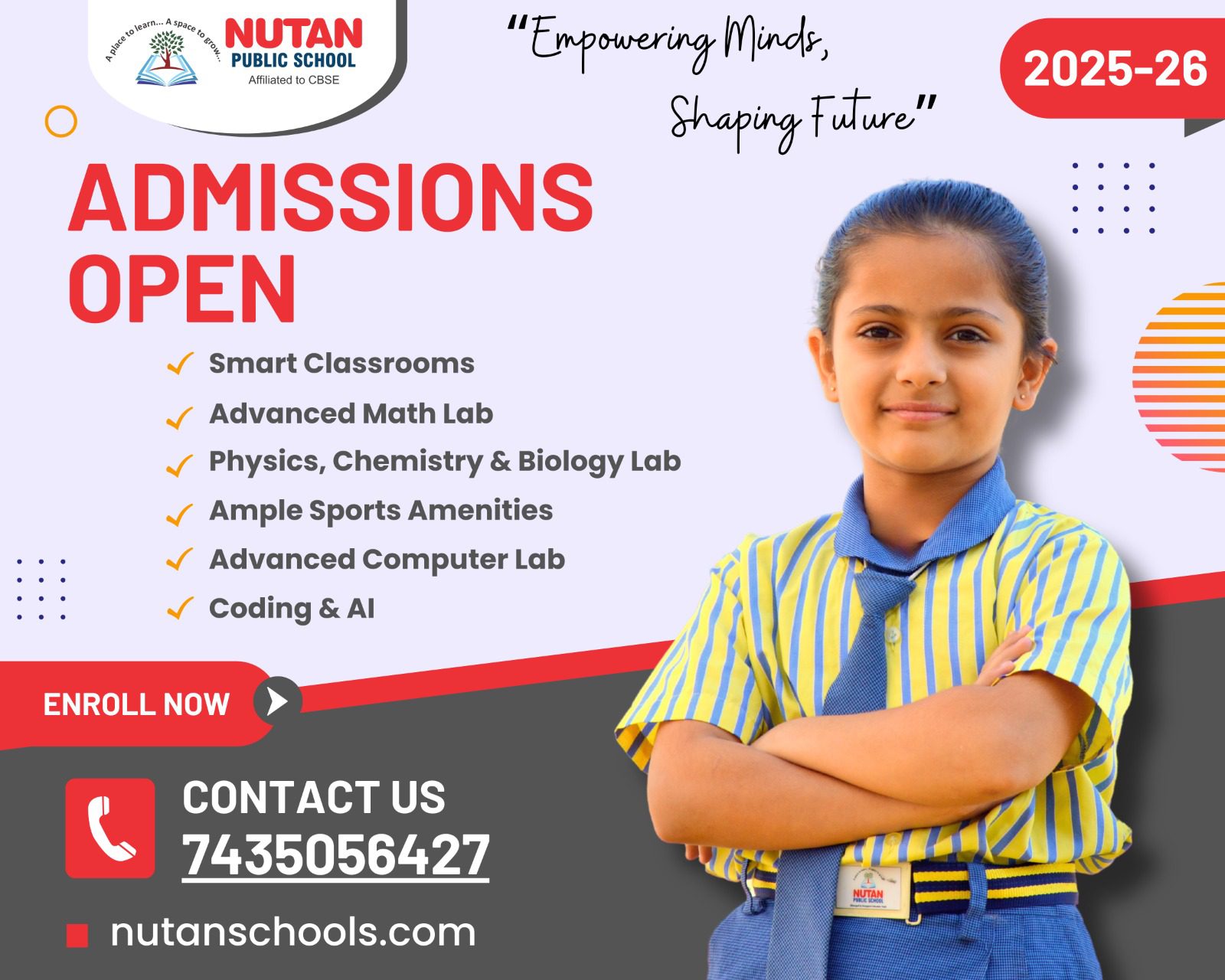 Nutan Public School is a co-educational institution affiliated with the Central Board of Secondary Education (CBSE), New Delhi. Admission is granted in accordance with the school’s specific admission guidelines and criteria.